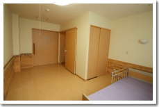 居室は全て個室です。全居室トイレ、洗面台、クローゼット(施錠可能)がついており、エアコンも完備しています。居室は30床全て同じつくりですが、隣同士左右の向きの違いはあります。また、介護付き有料老人ホームの居室床面積は最低13u以上と決まりがありますが、ヴィレージュは18uあります。見学された皆様から「思ったより広い!」とよく言われます。愛用の家具の持ち込みもOKなのでプライベートな時間をゆったり過ごせます。