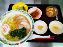 今日のお昼はラーメンでし た。とても美味しそうです ね。今日の夜はラーメンにし よう!と決めた日でした。 <メニュー> 柚子塩ラーメン・焼き餃子・チンゲ ン菜のナムル・カクテルゼリー |
