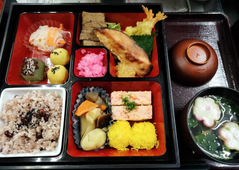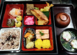 元旦の行事食「おせち料 理」です。皆さんお腹いっ ぱい食べられました。 |