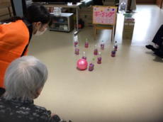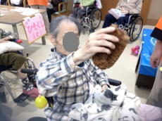 今日は節分の豆まきを行い ました。毎年恒例の大きな 鬼(職員による力作です) に皆さんで豆をぶつけてい ます。裏で職員が操作して います。 |