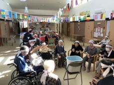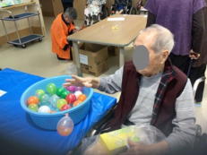 今日は運動会です。赤組と白組 に分かれて、聖火リレー、玉入 れ、おかし取り走の3種目を行 いました。選手宣誓をした方は 軽度の認知症でしたがしっかり 暗記して役目を果たしてくれま した!凄いと思います。 |