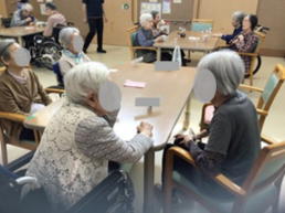 ![]() 3月の誕生会を行いました。この日は厨房よりケーキが出まし た。皆さんおいしそうに食べていましたよ。夢中になって口にク リームをつけていた方も・・・ |