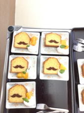 | 母の日に引き続き、父の日という事でフラワーアレンジメントを行いました。今回の主役はお父さんです。なかなか上手でしたよ。おやつのケーキにひげが生えているように見えますね。 |